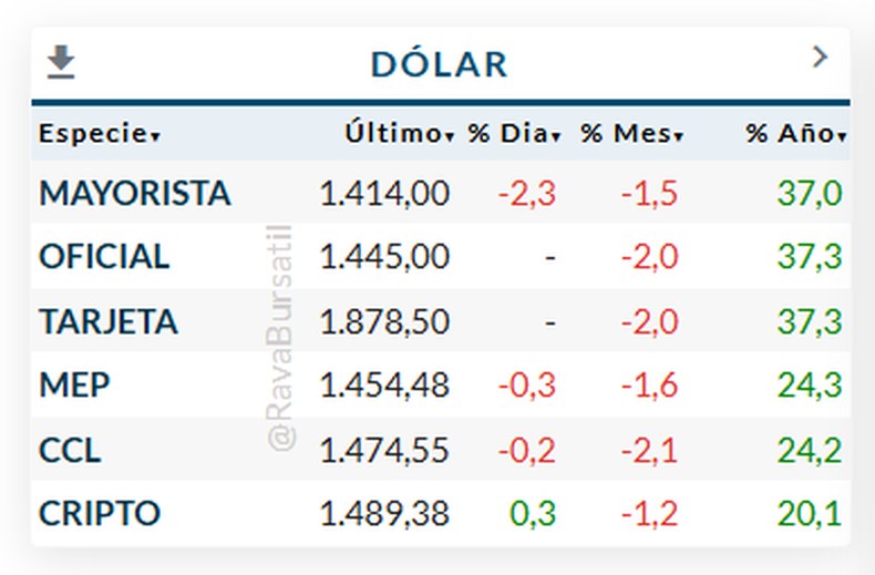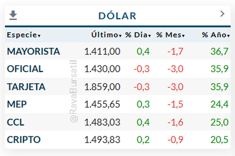 El dólar oficial cotiza sin cambios a $ 1.475 en el Banco Nación, pero el mayorista escala a $ 1.446