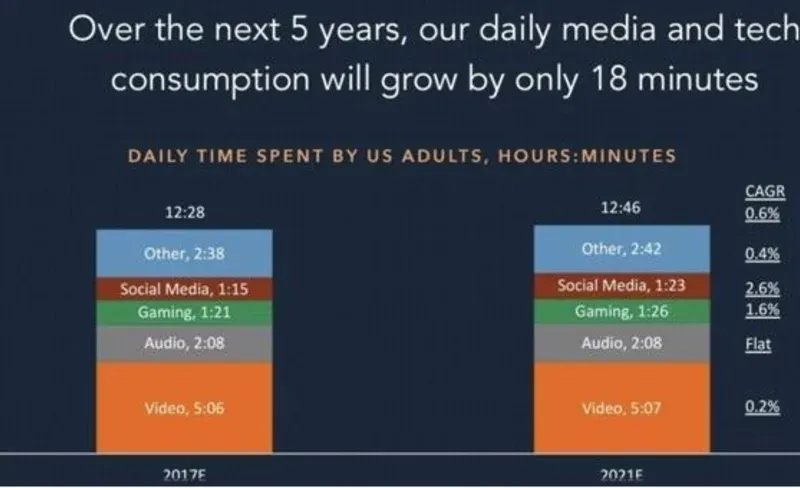 El consumo de medios alcanzó las 12.28 horas diarias. Su punto de saturación. En los próximos cinco años sólo crecerá 18 minutos. A los medios digitales sólo les resta competirle al sueño (lograr que los ciudadanos duerman menos para consumir más) o competir entre sí.