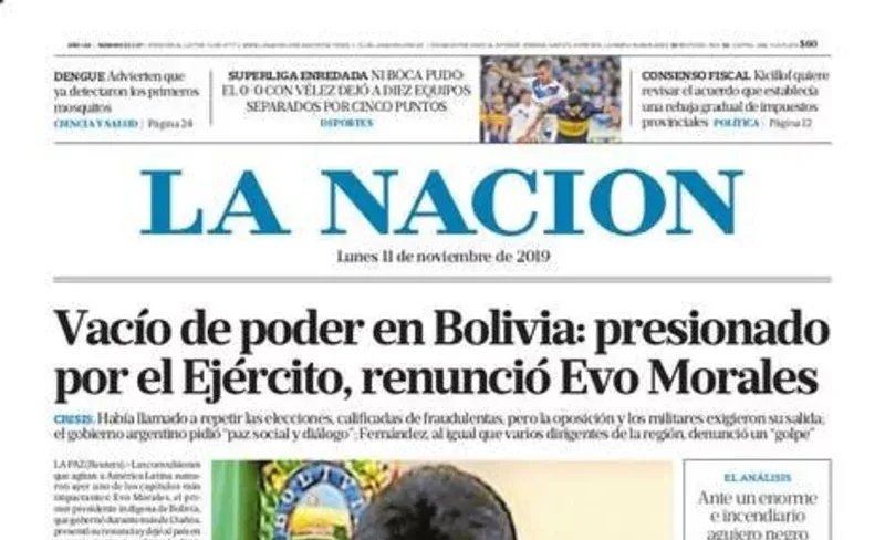 El periplo boliviano capturó la atención de los medios en todo el mundo. En Argentina, los diarios La Nación y Página/12, con líneas ideológicas antagónicas, dieron amplia cobertura al tema. En esta nota repasamos el tratamiento de la crisis boliviana en ambos medios, desde la renuncia de Morales el 10 de noviembre y hasta los diez días posteriores.