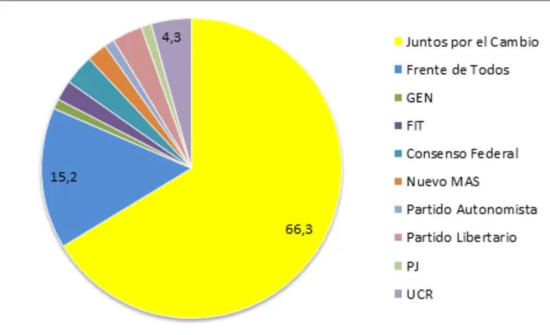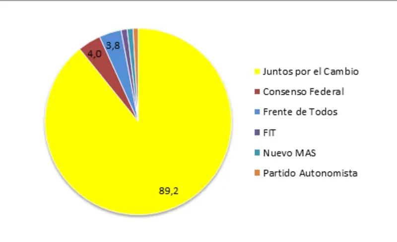 Las más de 11 horas de video subidas a Internet por el canal oficial en las que interviene algún candidato o funcionario del Gobierno muestran que casi el 90% del tiempo se distribuye entre 39 referentes del frente oficialista Juntos por el Cambio. Consenso Federal y el Frente de Todos se ubican lejos en segundo lugar, mientras que los demás partidos representan el 1% o menos cada uno.