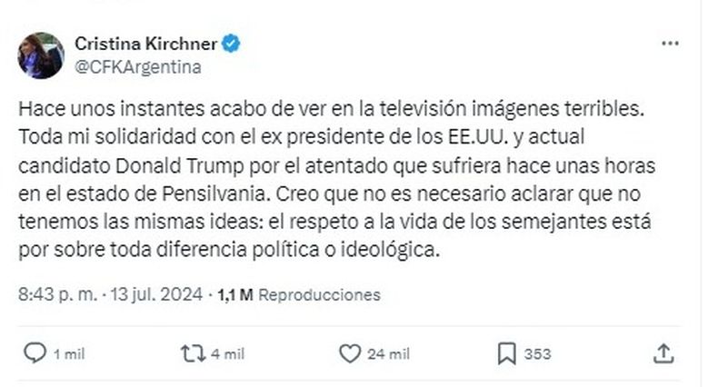 El expresidente y candidato republicano, Donald Trump, resultó con una herida en su oreja al ser atacado a tiros mientras daba un discurso de campaña en Pensilvania, al noreste de Estados Unidos. Tras escucharse los disparos, el exmandatario fue evacuado por los integrantes del servicio secreto, quienes lo trasladaron hacia otra dependencia. El presunto autor del magnicidio fue abatido y otra persona que participaba del evento de campaña falleció. Minuto a minuto, todas las novedades del atentado que conmocionó al mundo entero.