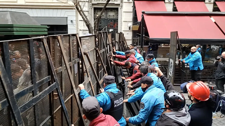 "Les quiero agradecer a los presentes y a los que no pudieron estar presentes debido a que el autoritarismo está afuera. Algunos pasaron un momento difícil para poder ingresar, tuvieron miedo, pero están acá acompañándonos", sostuvo en alusión a los manifestantes de organismos de derechos humanos y de partidos de izquierda que repudiaron la realización de la ceremonia.