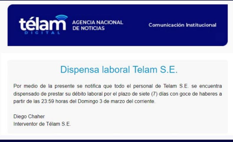 El presidente Javier Milei ordenó el vallado de la redacción de Télam, el otorgamiento de licencias a sus trabajadores y sus trabajadoras, y la suspensión de la web de la agencia de noticias. De esta forma, avanza en concretar lo que fue una de sus promesas de campaña.